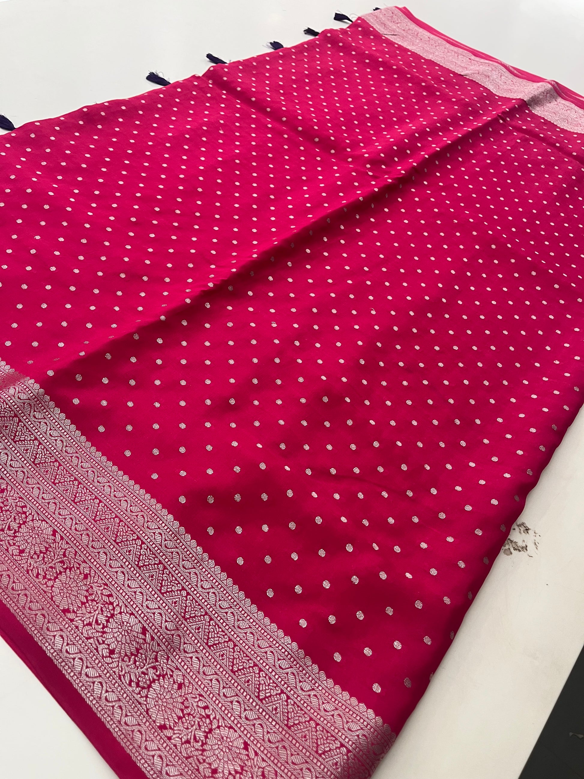 Banarsi Crape Silver Butties