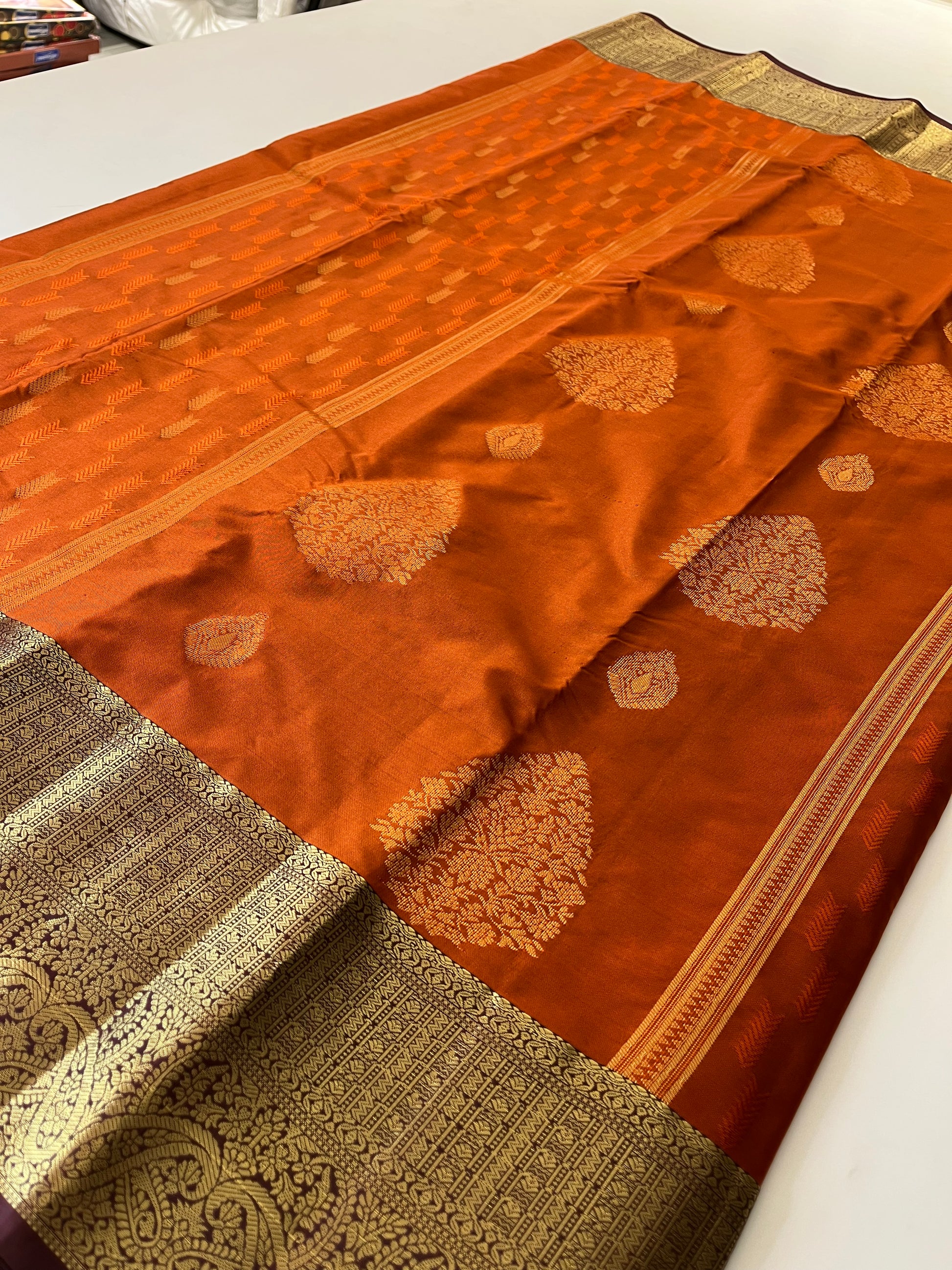 Rust orange x deep wine semi Pattu saree