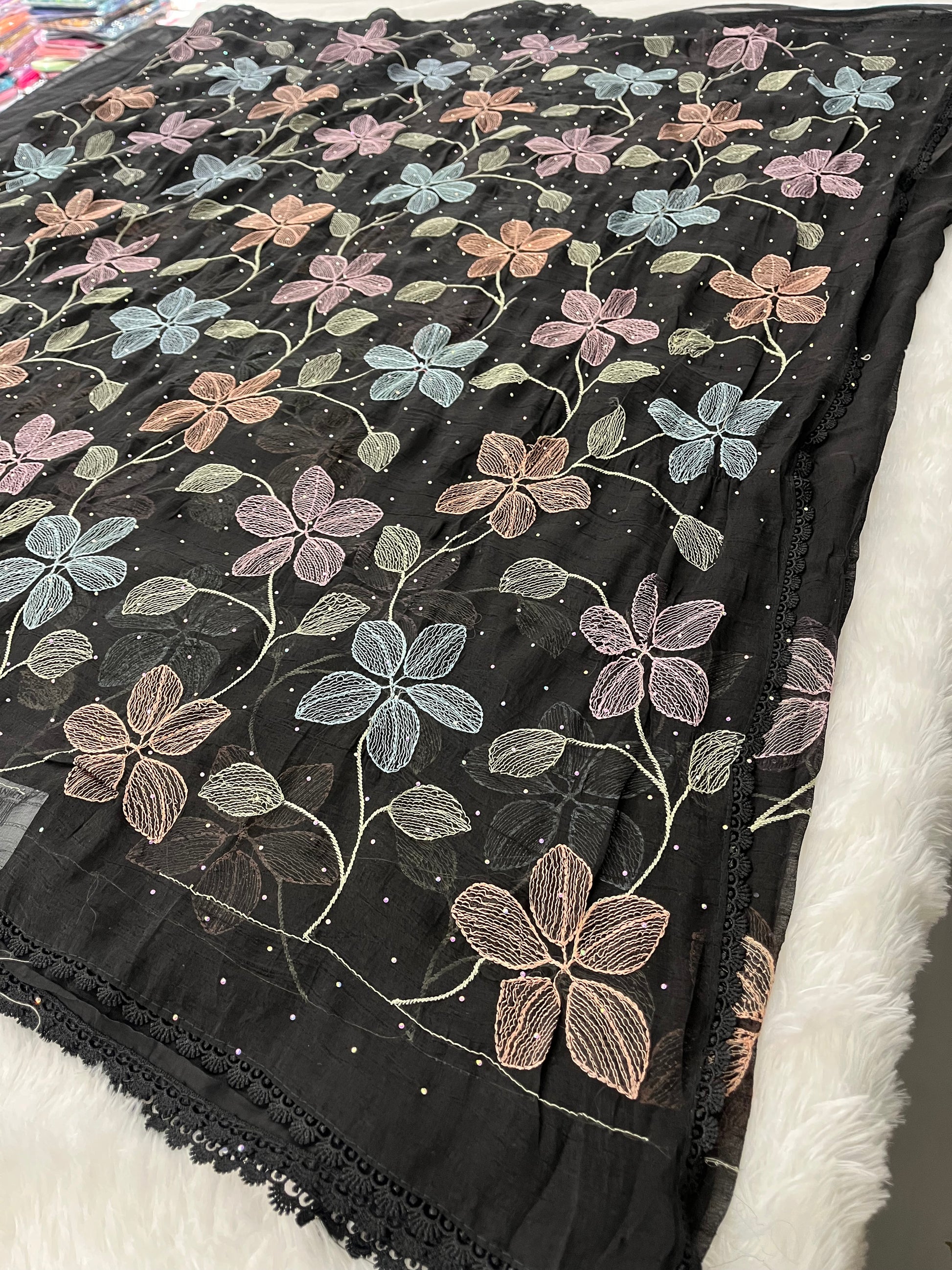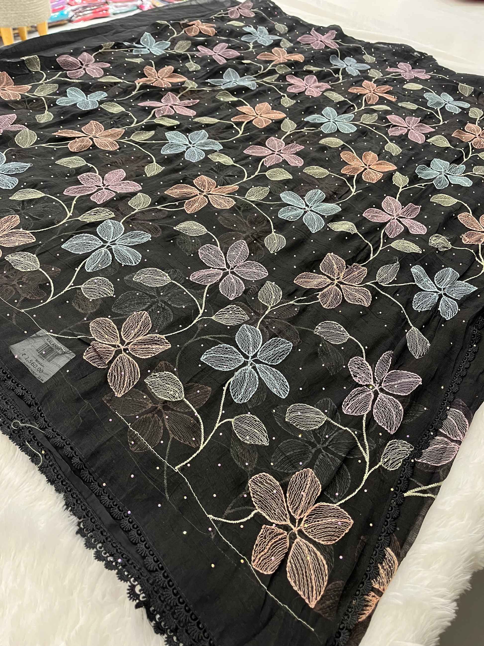 Black Floral Soft Organza Saree-F4